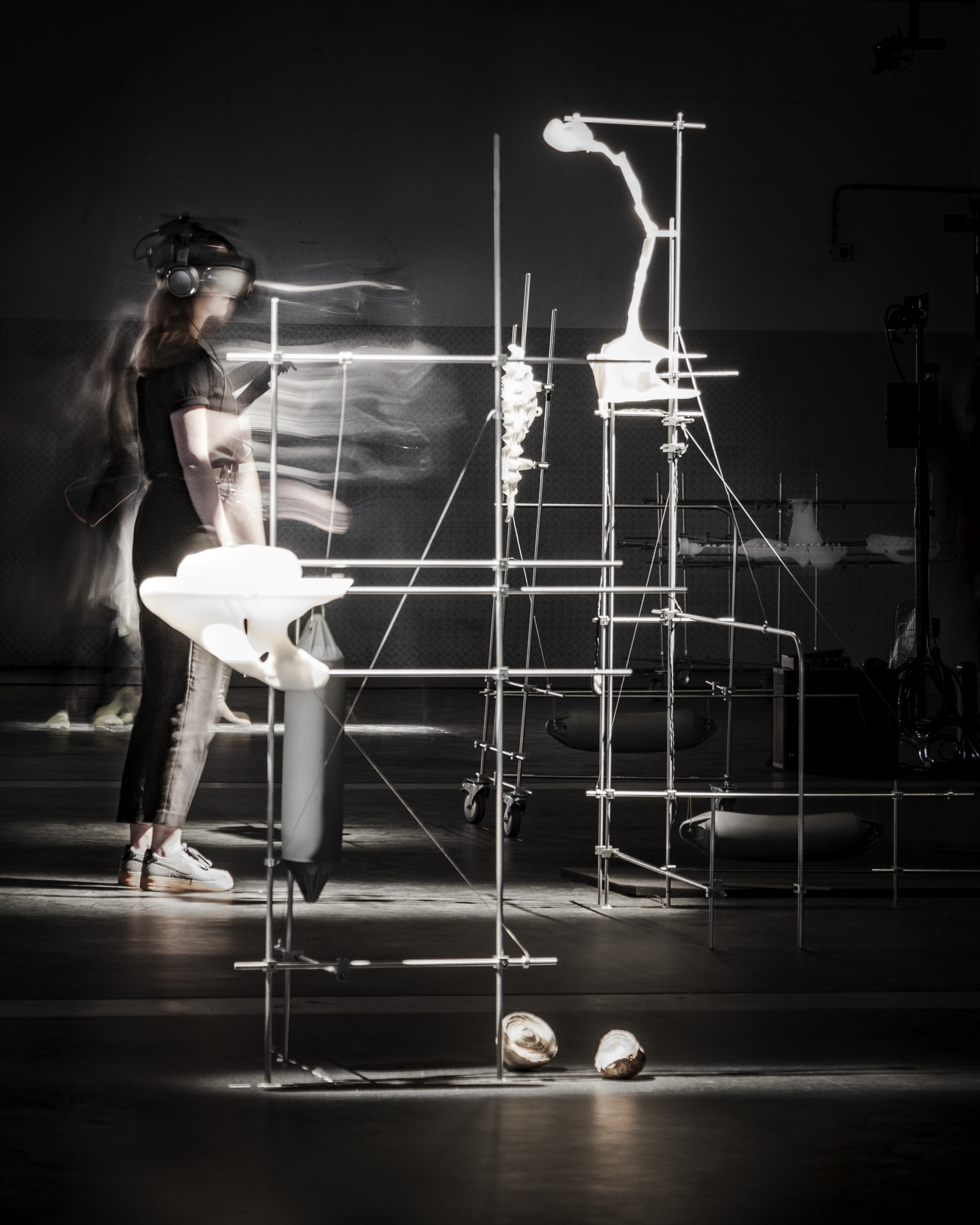 Every object in the physical installation aligns with the scannings from found environments stored inside pointclouds. The Memor, involves VR technologies in friction with objects and the human ability to organize perception to build a world. Every new visitor, every return to the Memor changes it. Inside the installation, visitors' senses are triggered as an active medium to produce, experience, and become aware of the workings of memory and time within their own body. They become a wetware repository, composed of minerals, bacteria, and traces of ancient energy systems. Inside the headset, reality is reversed. Inside and outsides seem more permeable. We experience a world - when we reach out for an object, it touches our skin – but we do not see our hand that touches it. From the perspective of the digital world, our body is a ghost.