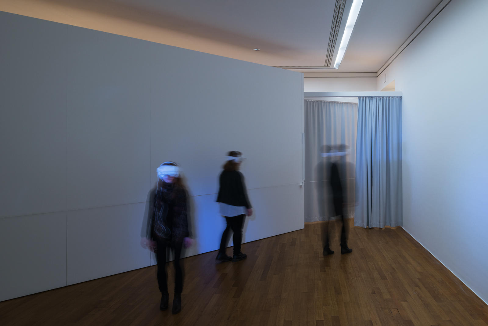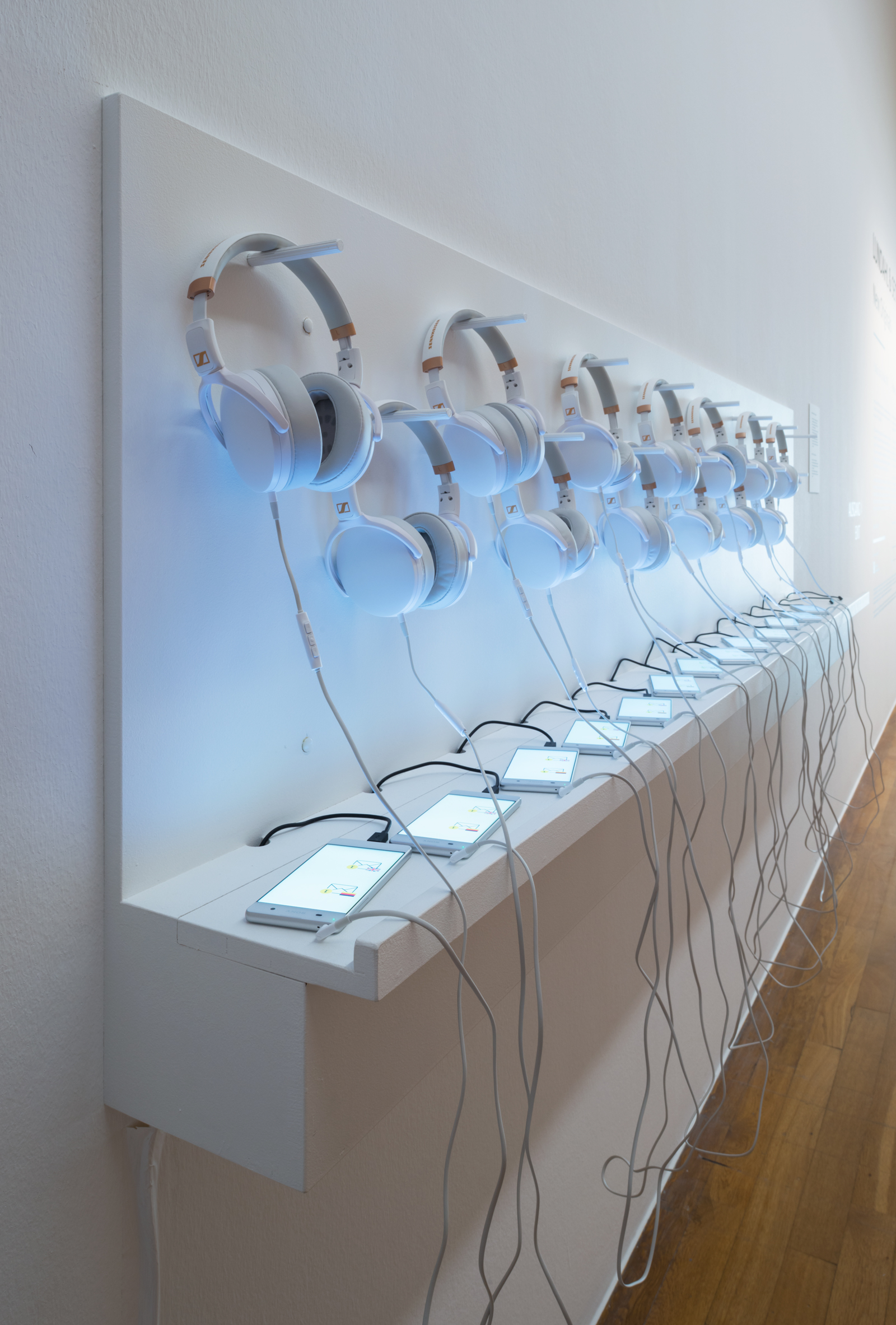 Technique & Installation: 30 Headphones, 30 sightless goggles, 30 Smartphones: Synchronized three-dimensional sound and Light. Curated selection of original artworks from a permanent collection, temporal exhibition or borrowed works.
