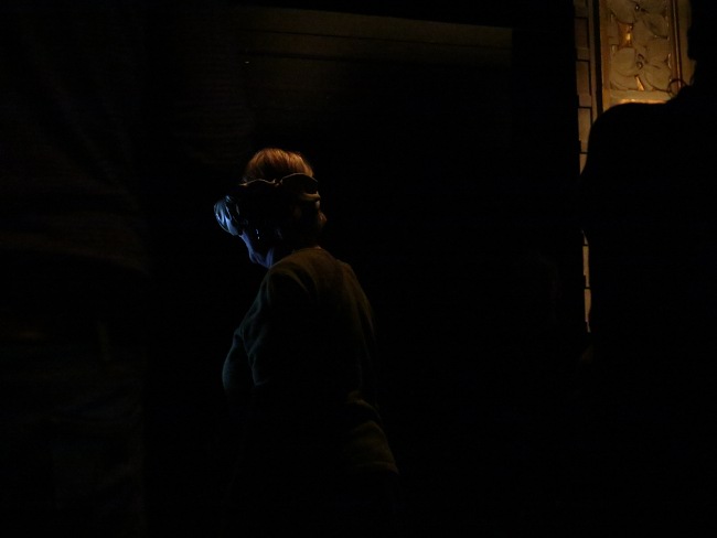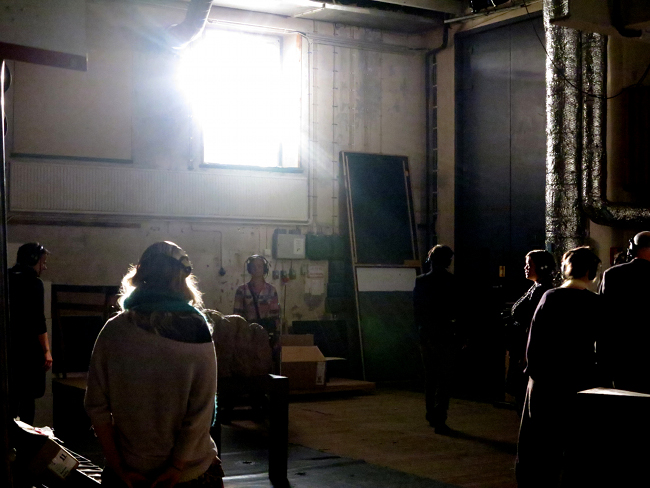 (2) By the body's proprioperception (the experience of the body from the inside - the proximity between different body parts and how they are positioned in a room). In Proscenium this is used to bring voices from the past back to life using technology, choreographed touch and other multisensory illusions.